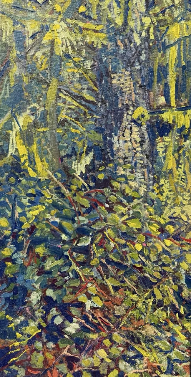 Created on-site over six nights at Clear Water Creek near Baker Lake Road. This piece was painted while living out of my van on DNR land during the winter, adding a visceral hardness to the process and the final work.