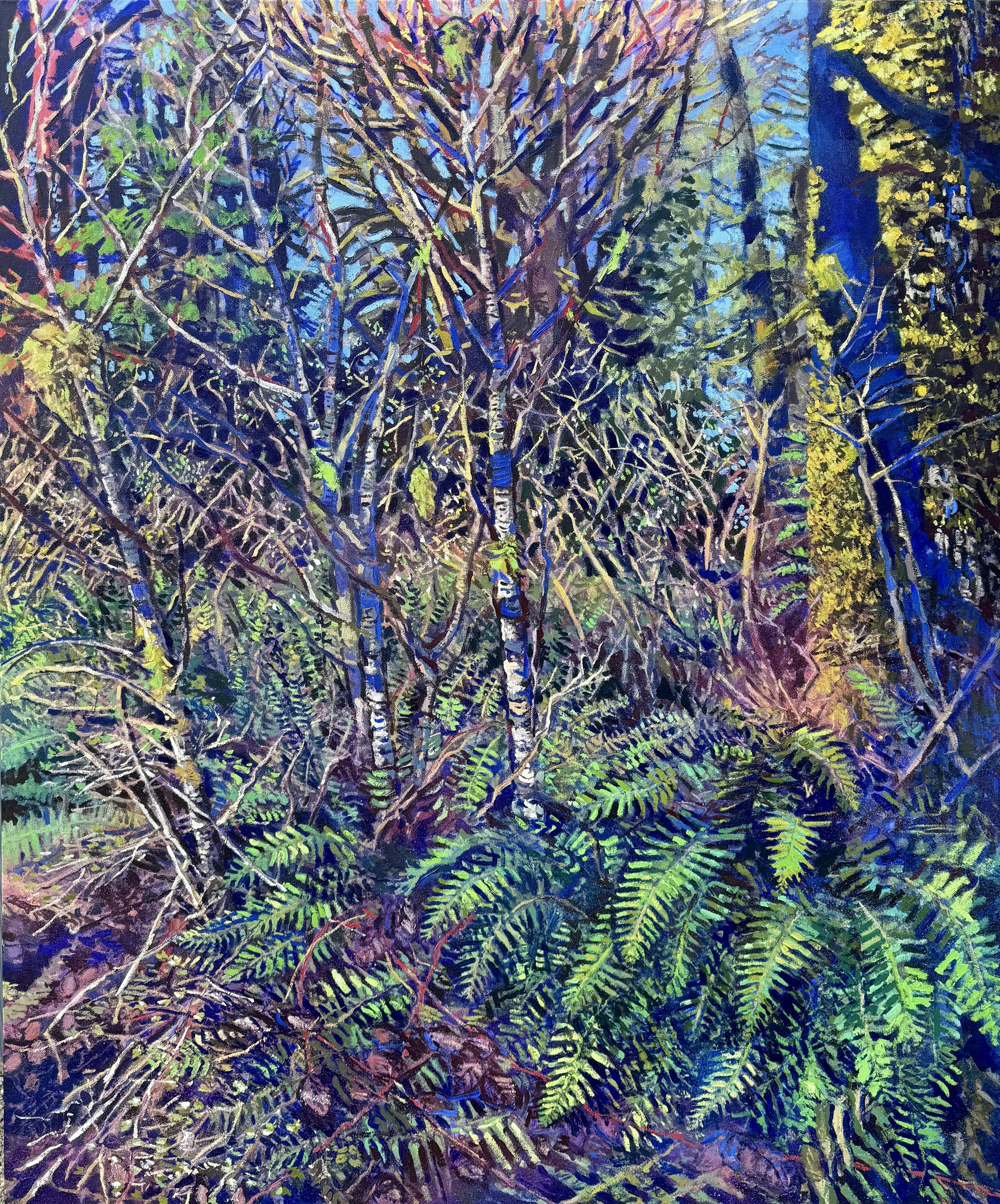 The last of the winter transition. This piece took almost 2 months and 10 trips out to location. Dealing with early sunsets, mountains obscuring the lighting and lots of rain in between. Capturing the slow subtle changes of late winter to early spring, more rust and oranges within the ferns, dead leafs from fall and new flowers blooming as we enter a new season.